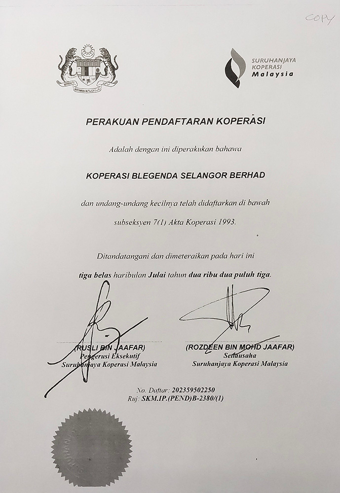 Corporate background information on Koperasi Blegenda Selangor Berhad (KBSB).